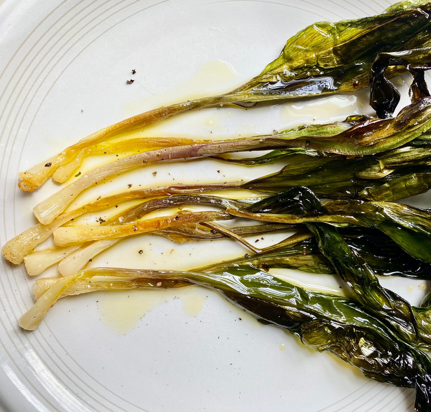3. Roast (or grill) them; a personal favorite method. Toss them with olive oil, salt/pepper, and roast for about 20 minutes, until the bulbs have become soft & tender, and the leaves are nice & crispy. Maybe you roast them alongside a good spring chicken or a piece of fish. Or, better yet, give them a quick zest of lemon and serve as a simple and elegant side dish.