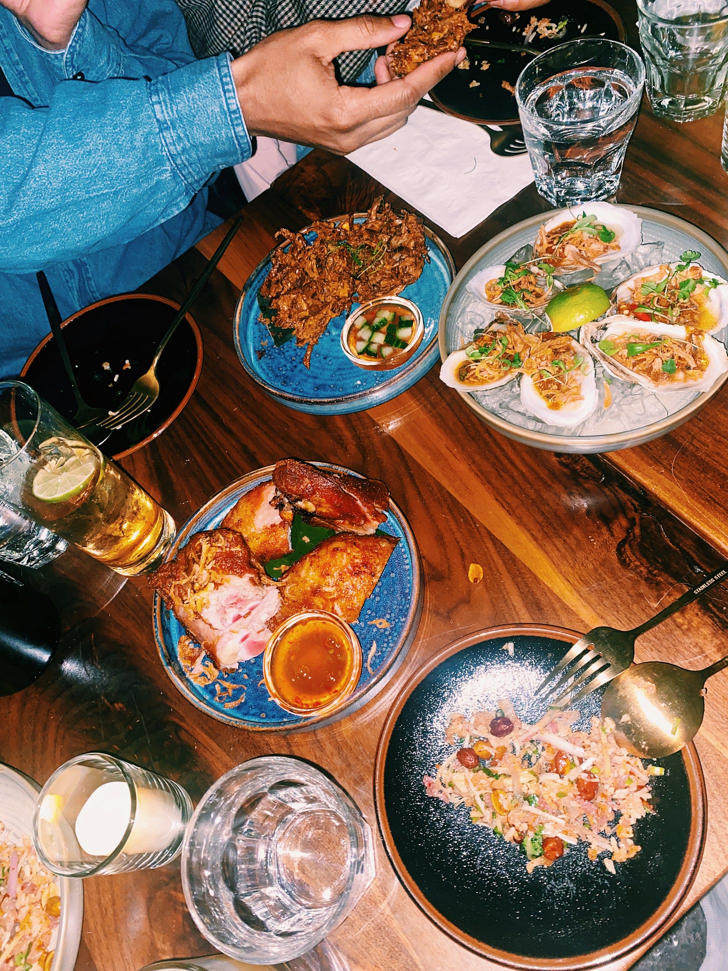 Also — I want to take a brief moment to shout out a Brooklyn Thai joint that has steadily entered my top-5 favorite restaurants: Tong. Some friends and I dined there earlier this week to celebrate my birthday. We ate hat yai fried chicken and larb gai and banana blossom fritters and the most delicious oysters with lemongrass and chili jam. Three years ago I spent my golden birthday drinking Changs and eating mango sticky rice on Khao San Road in Bangkok with a group of strangers I had met earlier in the afternoon. The tradition lives on …